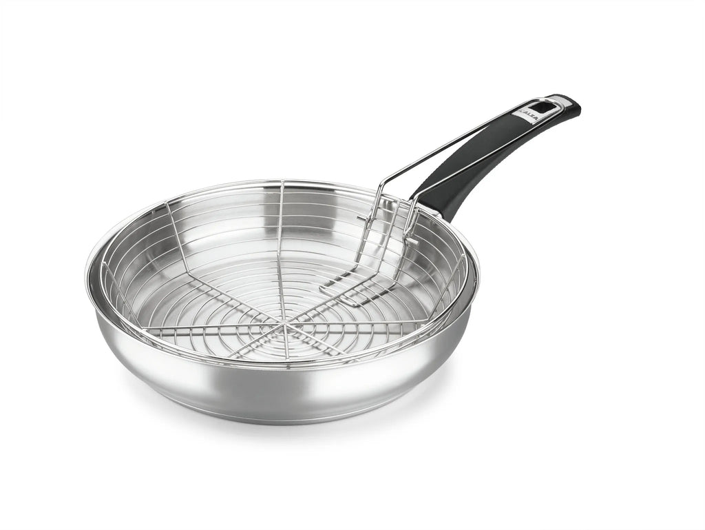 Il cestello per padella friggitrice da 28 cm di ALZA è ideale per friggere alimenti in quantità maggiori. Realizzato in acciaio inossidabile 18/10, offre resistenza e facilità di pulizia, essendo adatto alla lavastoviglie. Trasforma la tua padella in una friggitrice funzionale ed efficiente.