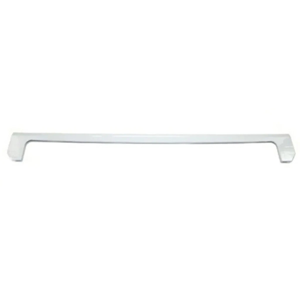 Supporto in plastica per vassoio del frigorifero Beko, Saivod, Ansonic. Questa parte frontale tiene in posizione i vassoi di vetro dell'elettrodomestico. Profilo frontale del ripiano in vetro.