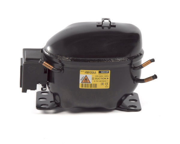 Questo compressore ermetico Secop modello HMK95AA è progettato per impianti di refrigerazione domestica. Utilizza il refrigerante R600a e offre una potenza di 1/5 HP (167W), funzionando a 220-240V e 50Hz. Il suo design compatto e l'alta efficienza lo rendono ideale per frigoriferi.