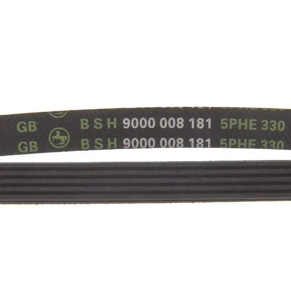 La cinghia 5PHE 330 per asciugatrice Balay è un componente essenziale che trasmette il movimento del motore al tamburo, permettendo la sua corretta rotazione durante il ciclo di asciugatura. È realizzata in gomma scanalata resistente che garantisce una presa ottimale e una lunga durata nel funzionamento dell'elettrodomestico.