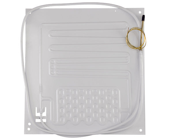 Evaporatore a piastra inferiore progettato per frigoriferi a 2 porte. Questo componente essenziale per la refrigerazione, con dimensioni di 430 x 410 mm, include un capillare di uscita per un’installazione efficiente.