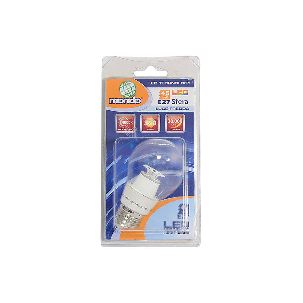 LAMPADINA 4,5W E27 SFERA LED LUCE BIANCA MONDO