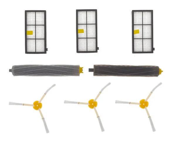 3 filtri HEPA, 3 pale, 1 confezione di rulli estrattori centrali, spazzola. SERIE 800-900. Mod. 810, 816, 865, 866, 870, 871, 876, 880, 886, 890, 895, 896, 960, 965, 966, 970, 980, 990, 996. IROBOT, ROOMBA.
