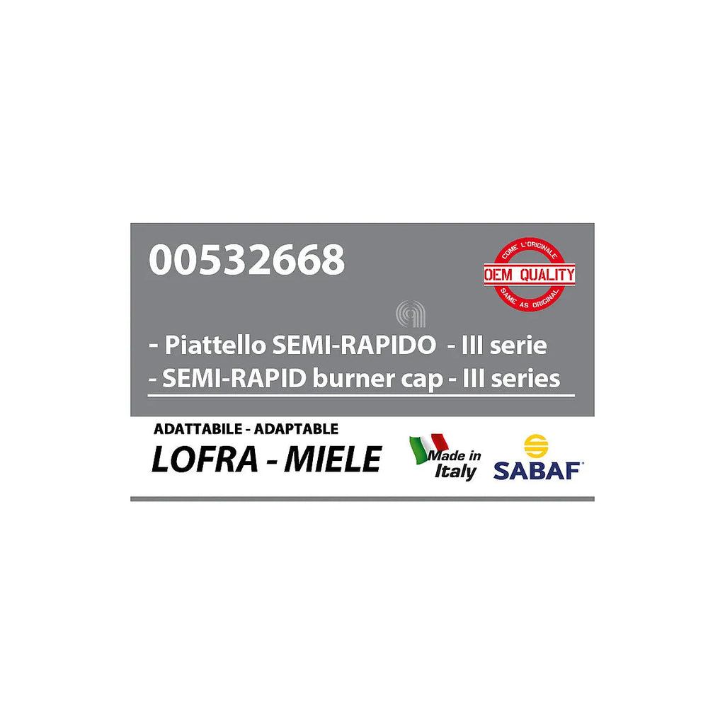 Ricambio di piattello (noto anche come cappellotto o bruciatore) semirapido della 3ª serie, prodotto da LOFRA e compatibile con un’ampia gamma di piani cottura. Questo componente, con finitura in smalto nero opaco, è un pezzo di ricambio OEM di alta qualità progettato per garantire prestazioni ottimali e una lunga durata del vostro elettrodomestico. È fondamentale per la corretta distribuzione della fiamma nei bruciatori semirapidi, assicurando una cottura uniforme ed efficiente. Ideale per sostituire parti usurate o danneggiate e mantenere la vostra cucina funzionante come il primo giorno.