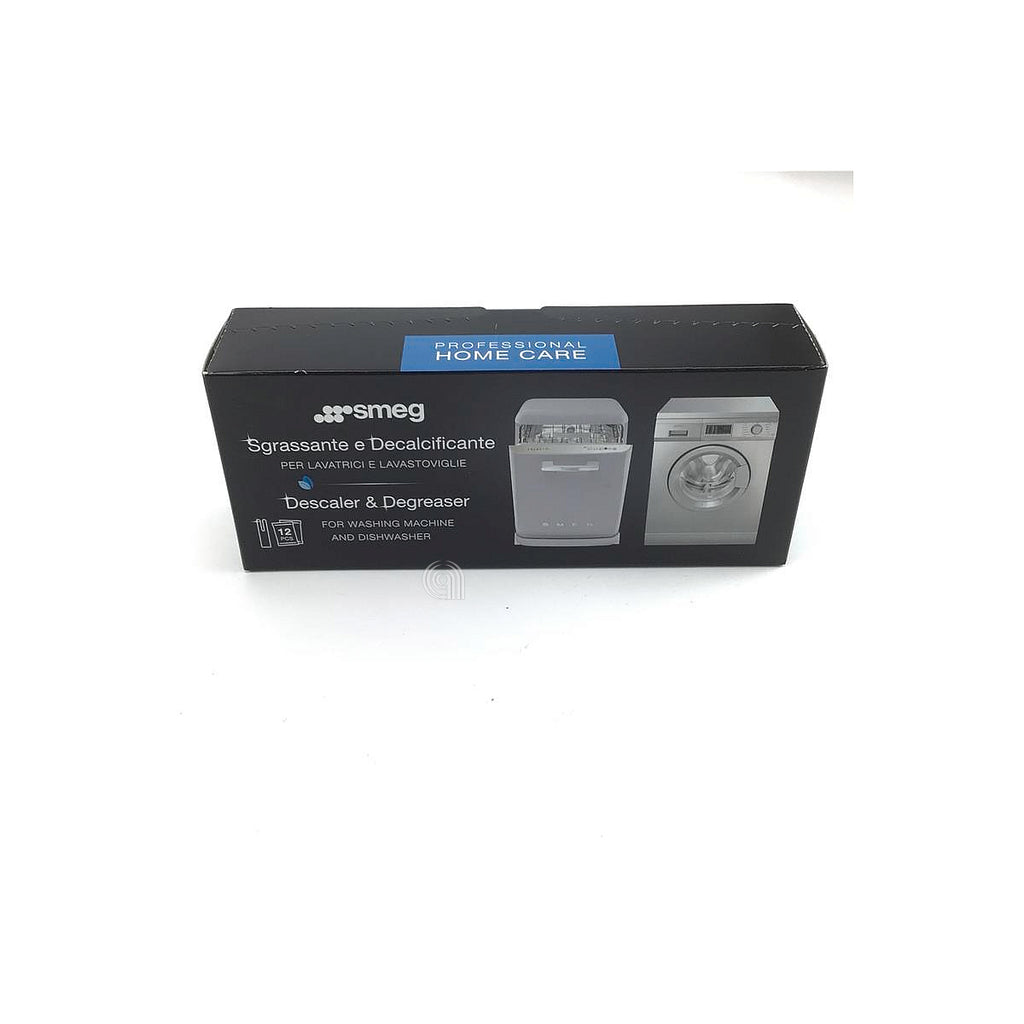 Polvere disincrostante e sgrassante originale Smeg, formulata per eliminare depositi di calcare e residui grassi in lavatrici e lavastoviglie, mantenendo le prestazioni ottimali dell’elettrodomestico.