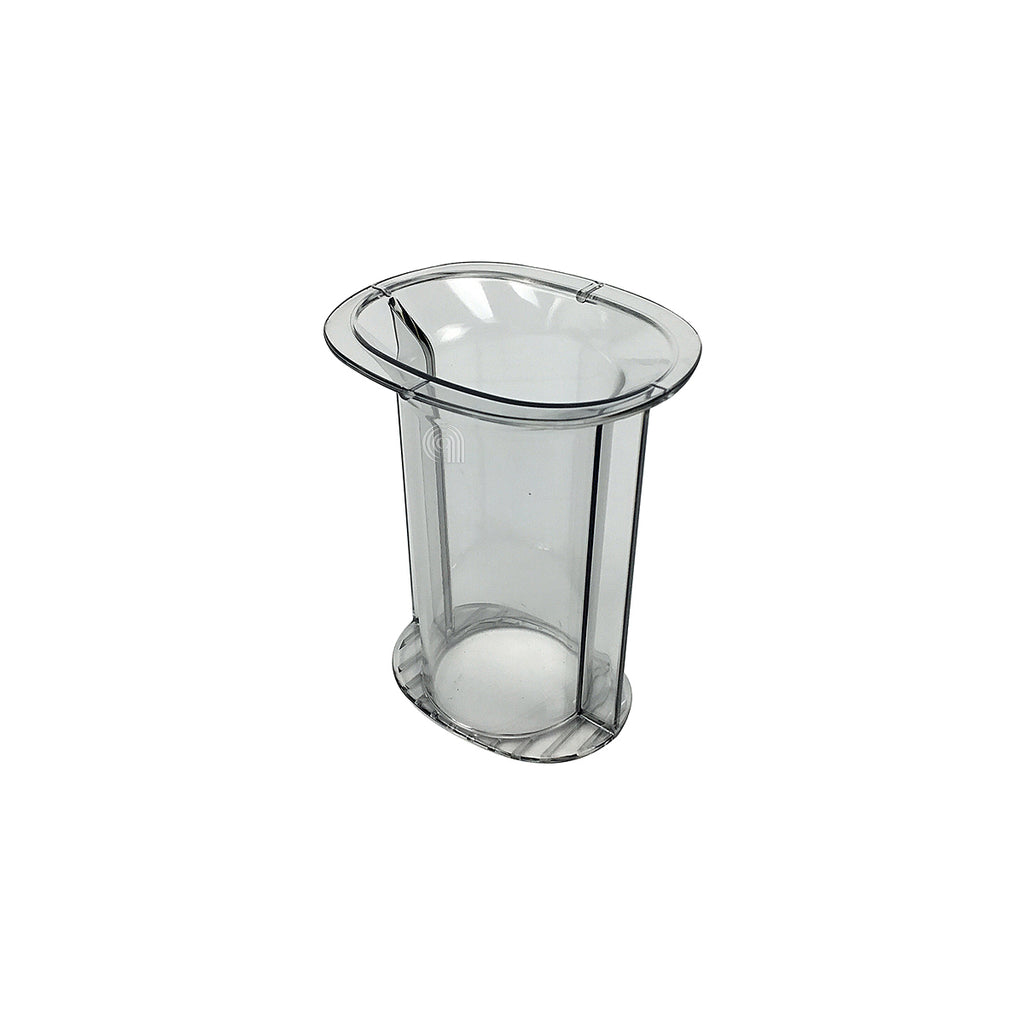 Pressore originale trasparente in plastica per robot da cucina Bosch e Siemens. È un accessorio rigido utilizzato per premere gli ingredienti all'interno della ciotola, facilitandone la miscelazione e la lavorazione nei robot da cucina.
