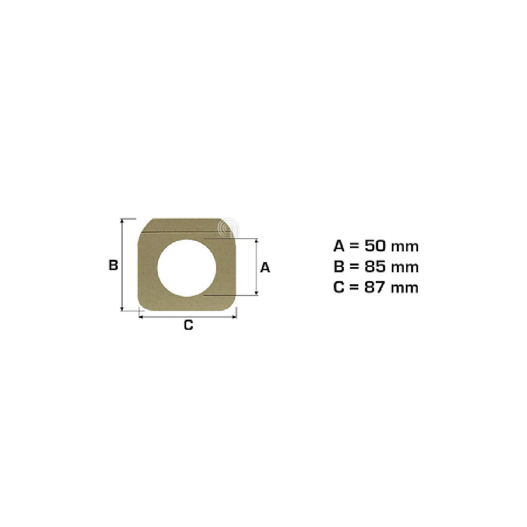 Sacchetto lungo e stretto che si fissa al centro e si avvolge attorno al motore a forma di 'U'. Non sono specificate misure numeriche esatte.