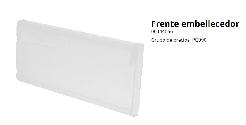 Rivestimento frontale del cassetto del congelatore Siemens. Pezzo di ricambio originale per elettrodomestico da cucina. Questo pezzo di ricambio si trova nella parte centrale del congelatore.