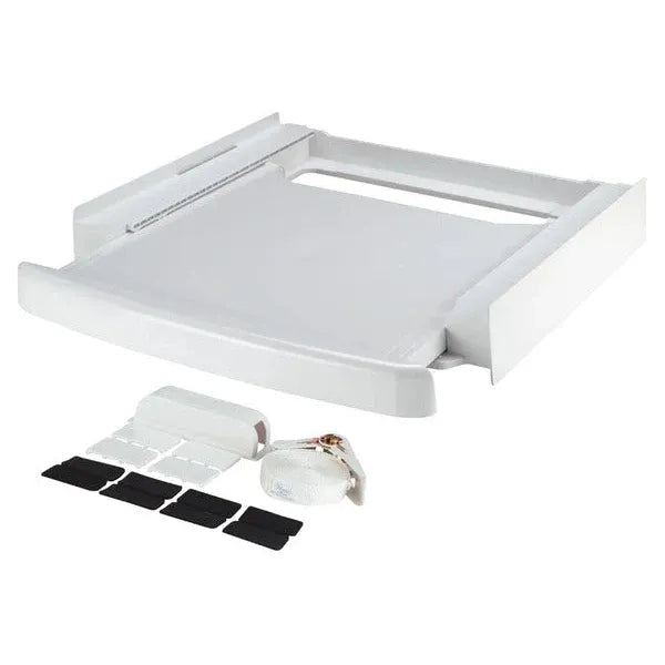 Questo supporto con vassoio estraibile è un accessorio progettato per unire e impilare lavatrici e asciugatrici in modo sicuro e stabile. Realizzato con una struttura robusta, consente di posizionare l'asciugatrice sopra la lavatrice, ottimizzando lo spazio in casa. Il vassoio estraibile facilita il carico, lo scarico e la piegatura dei vestiti senza bisogno di chinarsi, migliorando l’ergonomia durante l’uso.