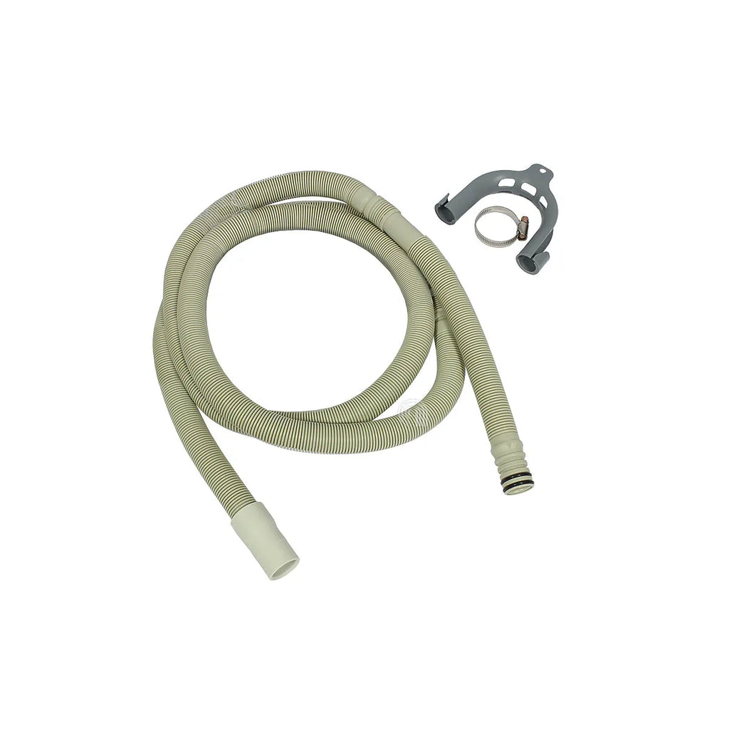 Tubo di scarico adattabile di **WHIRLPOOL** e **INDESIT**, compatibile con un'ampia gamma di lavatrici e lavastoviglie di varie marche. Questo ricambio di alta qualità è un'alternativa economica e funzionale alle referenze originali, progettato per lo scarico efficiente dell'acqua. La sua costruzione in plastica e gomma garantisce durata e un fissaggio sicuro alla pompa di scarico. È ideale per sostituire tubi danneggiati o con perdite, assicurando il corretto funzionamento del vostro elettrodomestico. La lunghezza approssimativa di 2 metri consente un'installazione flessibile.