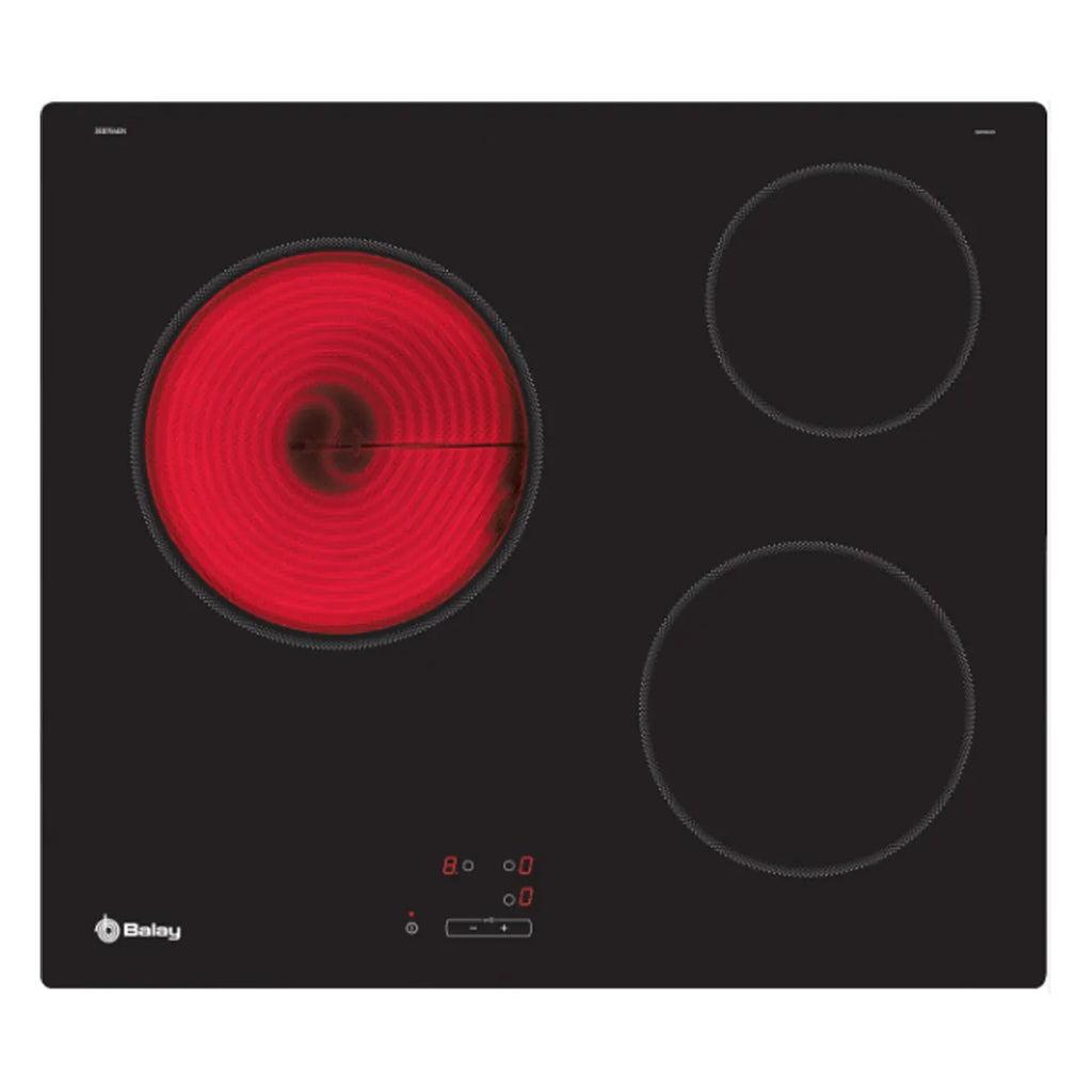 Balay Vetroceramica, Controsoffitto, Vetroceramica, Da incasso, 60 cm, 3, Finitura Nero/Vetro, Controllo touch facile da usare (9 livelli e senza timer), Area 24 cm< /span>